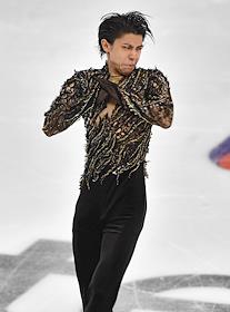 ISU Гран-при "Кубок Ростелеком" - 2018 по фигурному катанию во Дворце спорта "Мегаспорт". Японский фигурист Кадзуки Томоно во время исполнения произвольной программы мужского одиночного катания.