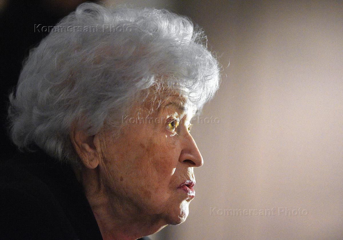 Пресс-показ выставки "Пикассо и Хохлова" прошел в Государственном музее изобразительных искусств (ГМИИ) имени Пушкина. Президент ГМИИ имени А.С. Пушкина Ирина Антонова (справа) во время пресс-показа.