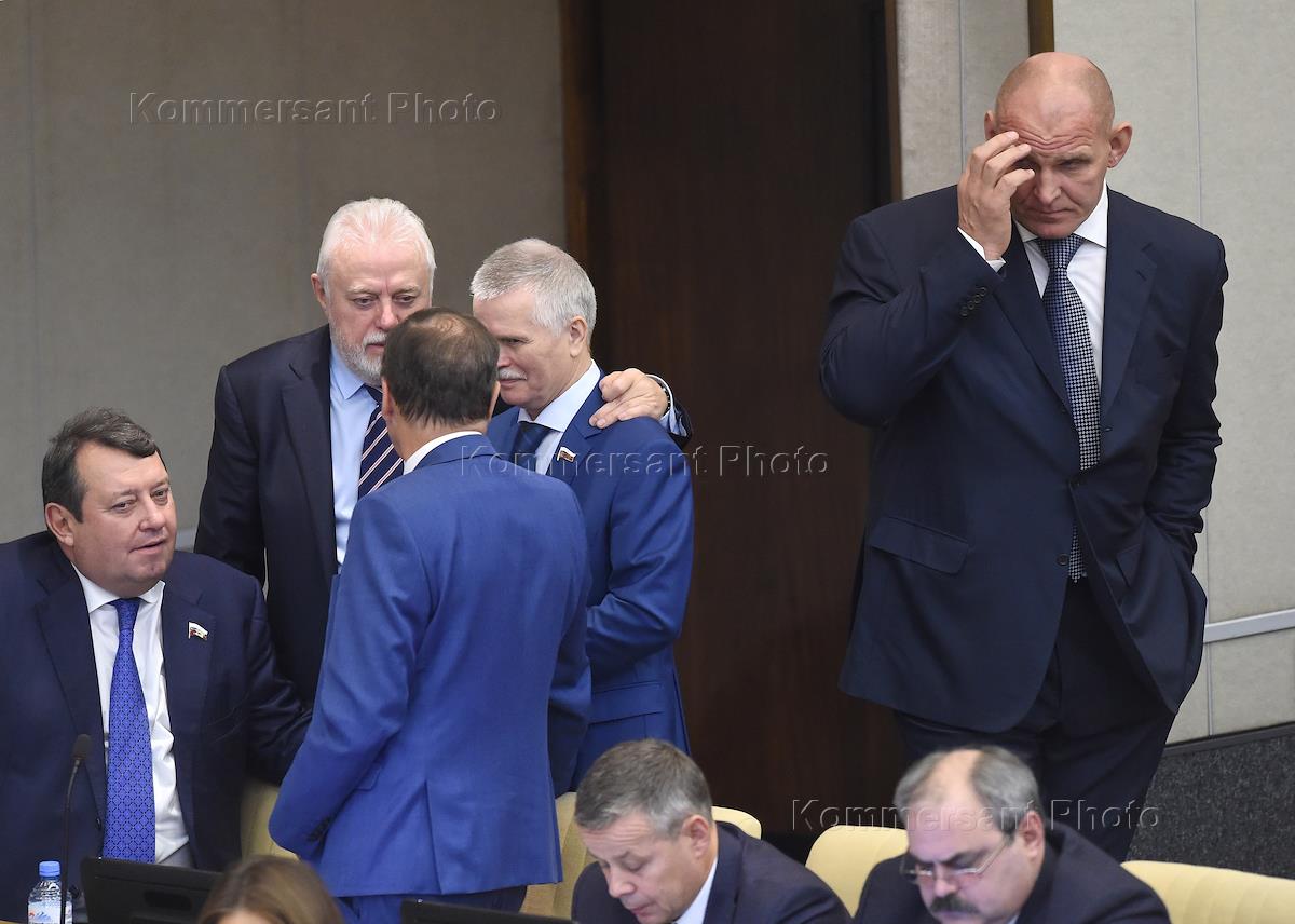 Пленарное заседание Государственной думы (ГД) России. Член комитета ГД России по энергетике Александр Карелин (справа) во время заседания.