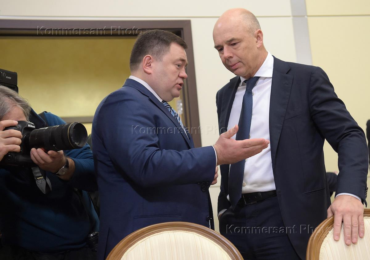 Working visit of Russian President Vladimir Putin to Sochi. General Director of the Russian Export Center Peter Fradkov (left) and First Deputy Prime Minister of the Russian Federation - Finance Minister Anton Siluanov (right) during a meeting with the leadership of the Russian Ministry of Defense and military-industrial complex. The meeting was held in the "Bocharov Ruchei" residence.