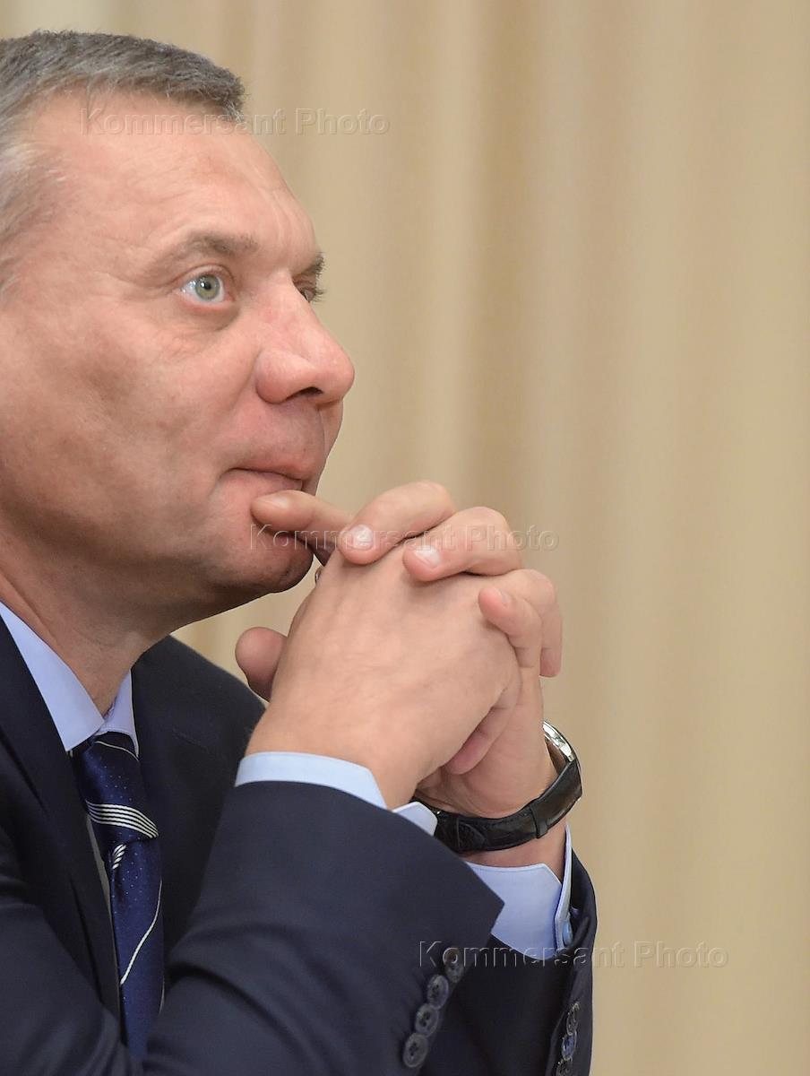 Рабочая поездка президента России Владимира Путина в Сочи. Министр промышленности и торговли России Денис Мантуров во время совещания с руководящим составом министерства обороны России и оборонно-промышленного комплекса. Совещание прошло в резиденции "Бочаров ручей".