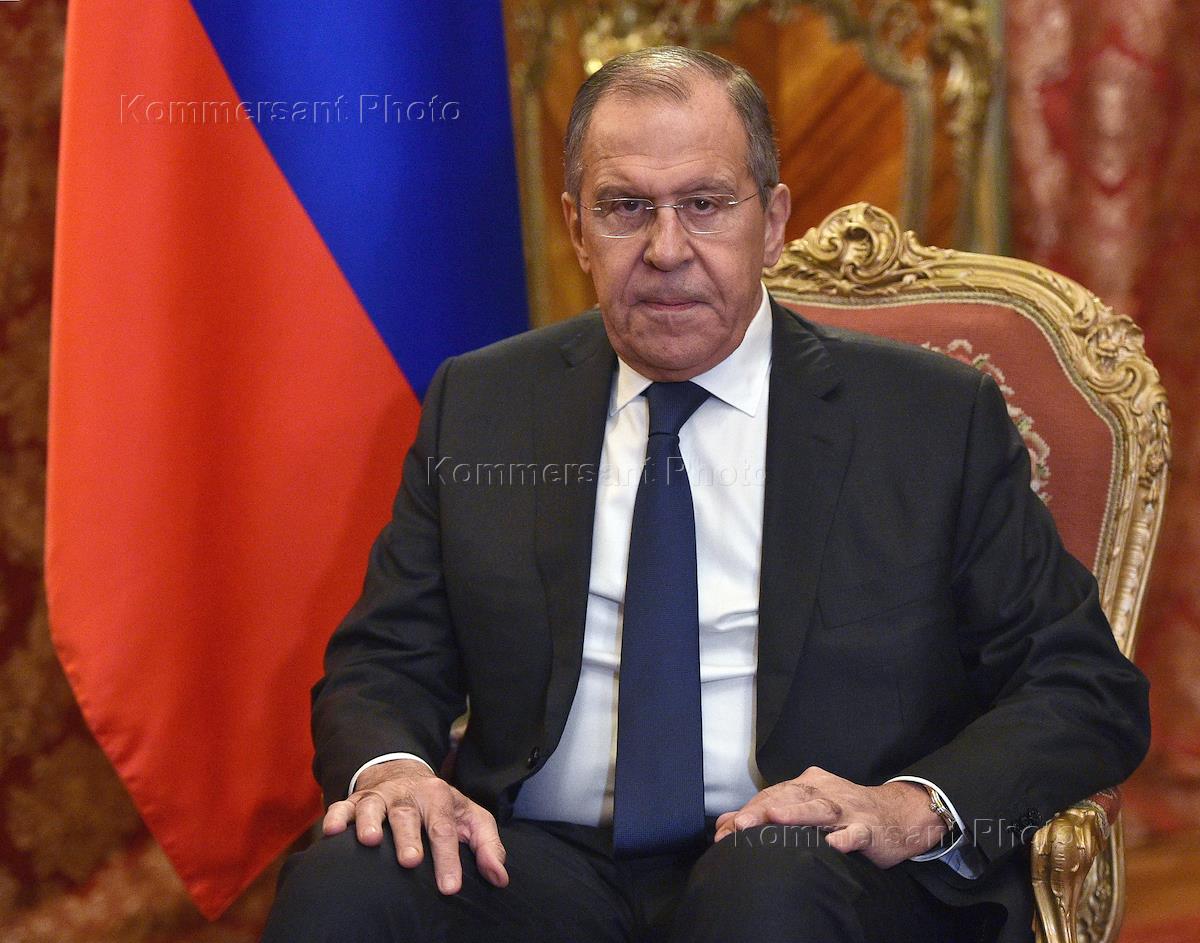 Minister of Foreign Affairs of Russia Sergey Lavrov during the meeting with Minister of Foreign Affairs of the Republic of South Africa Lindiwe Sisulu at the Reception House of Ministry of Foreign Affairs of Russia.