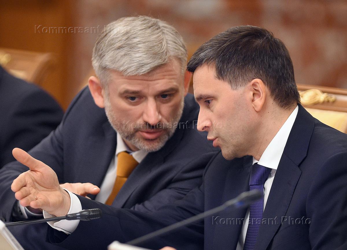 Meeting of the Russian government. Russian Minister of Transport Evgeny Ditrikh (left) and Dmitry Kobylkin (right), Russian Minister of Natural Resources and Ecology, before the meeting.