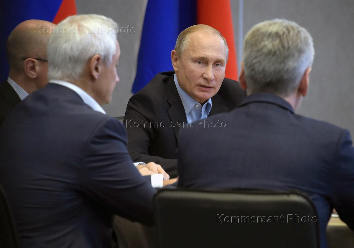 Working visit of Russian President Vladimir Putin to Yalta. Left to right: First Deputy Head of the Presidential Administration of Russia Sergei Kiriyenko; President of Russia Vladimir Putin; and First Deputy Prime Minister of Russia - Russian Finance Minister Anton Siluanov during an expanded meeting of the State Council Presidium.