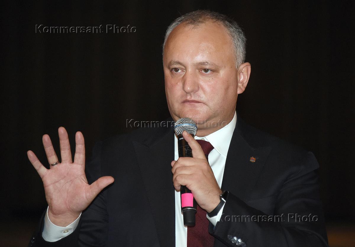 Moldovan President Igor Dodon during a meeting with Moldovan citizens who live and work in Russia. The meeting was held in the hotel "Cosmos".