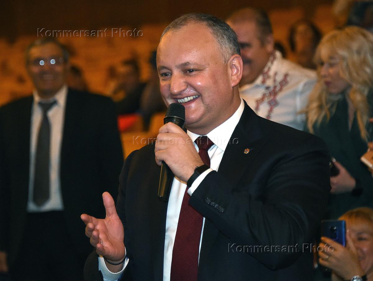 Президент Молдавии Игорь Додон во время встречи с молдавскими гражданами, которые живут и работают в России. Встреча прошла в гостинице "Космос".