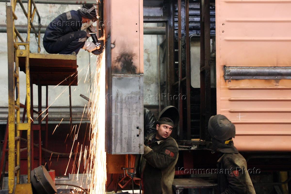 Тамбовский вагоноремонтный завод (ВРЗ). Рабочие завода на производстве.