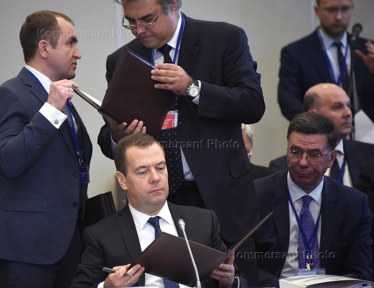 Working visit of Russian Prime Minister Dmitry Medvedev to Minsk. Meeting of the Eurasian Intergovernmental Council. Russian Prime Minister Dmitry Medvedev (center) during the meeting.