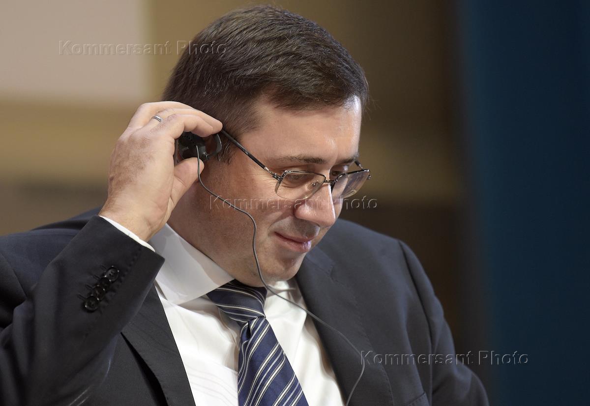 V Международный форум Финансового университета "Как попасть в пятерку". Заместитель министра финансов России Владимир Колычев во время работы форума.