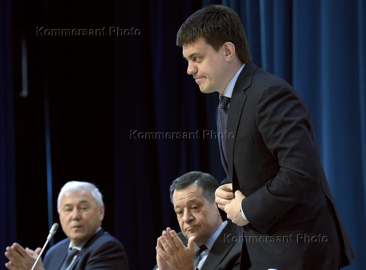 V Международный форум Финансового университета "Как попасть в пятерку". Председатель комитета Государственной думы России по бюджету и налогам Андрей Макаров (слева) и председатель правления ОАО "СУЭК" Владимир Рашевский (справа) во время работы форума.