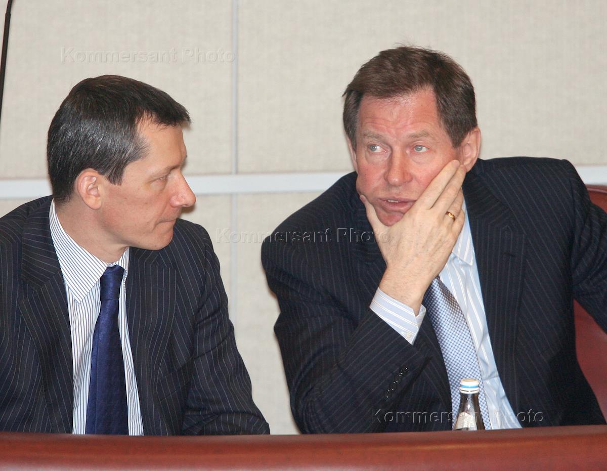 Заместитель Министра экономического развития и торговли России Андрей Шаронов (слева) и министр регионального развития России Владимир Яковлев (справа) на заседании Государственной Думы России.
