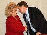 Заместитель председателя Государственной Думы России Любовь Слиска (слева) и министр регионального развития России Владимир Яковлев (справа) на заседании Госдумы.
