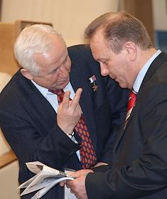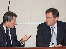 Председатель Государственной Думы России Борис Грызлов (слева) и министр регионального развития России Владимир Яковлев (справа) на заседании Госдумы.