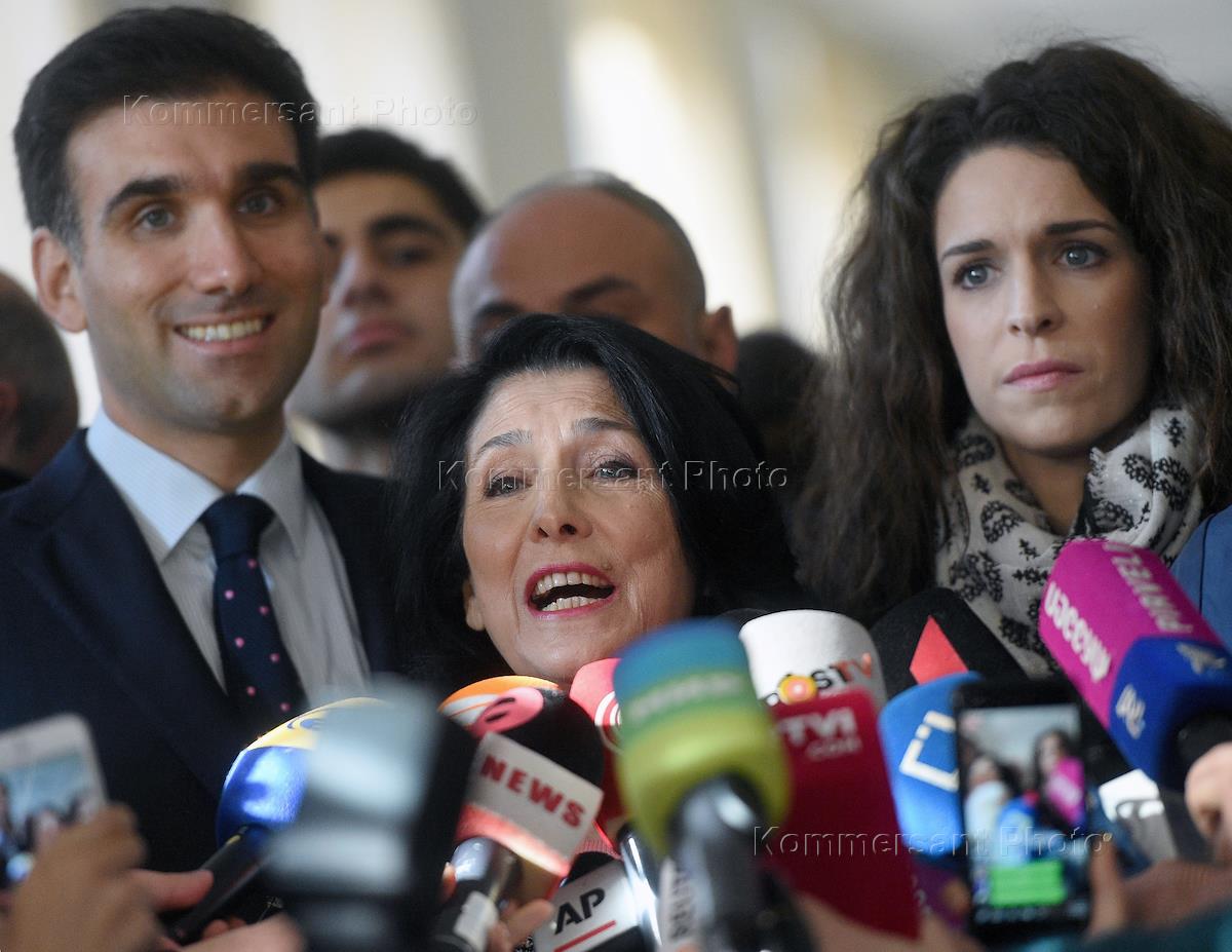 Выборы президента Грузии. Кандидат в президенты, лидер партии "Путь Грузии" Саломе Зурабишвили на одном из избирательных участков во время второго тура выборов президента Грузии.
