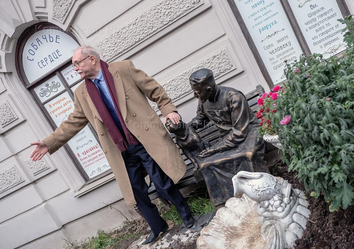 Церемония открытия памятника героям романа писателя Михаила Булгакова "Собачье сердце" на Моховой улице. Режиссер фильма "Собачье сердце", первый заместитель председателя комитета Государственной думы России по культуре Владимир Бортко на церемонии.