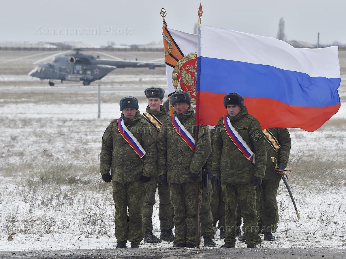 Церемония вступления четвертого дивизиона зенитно-ракетных комплексов С-400 "Триумф" на боевое дежурство. Военнослужащие во время церемонии.