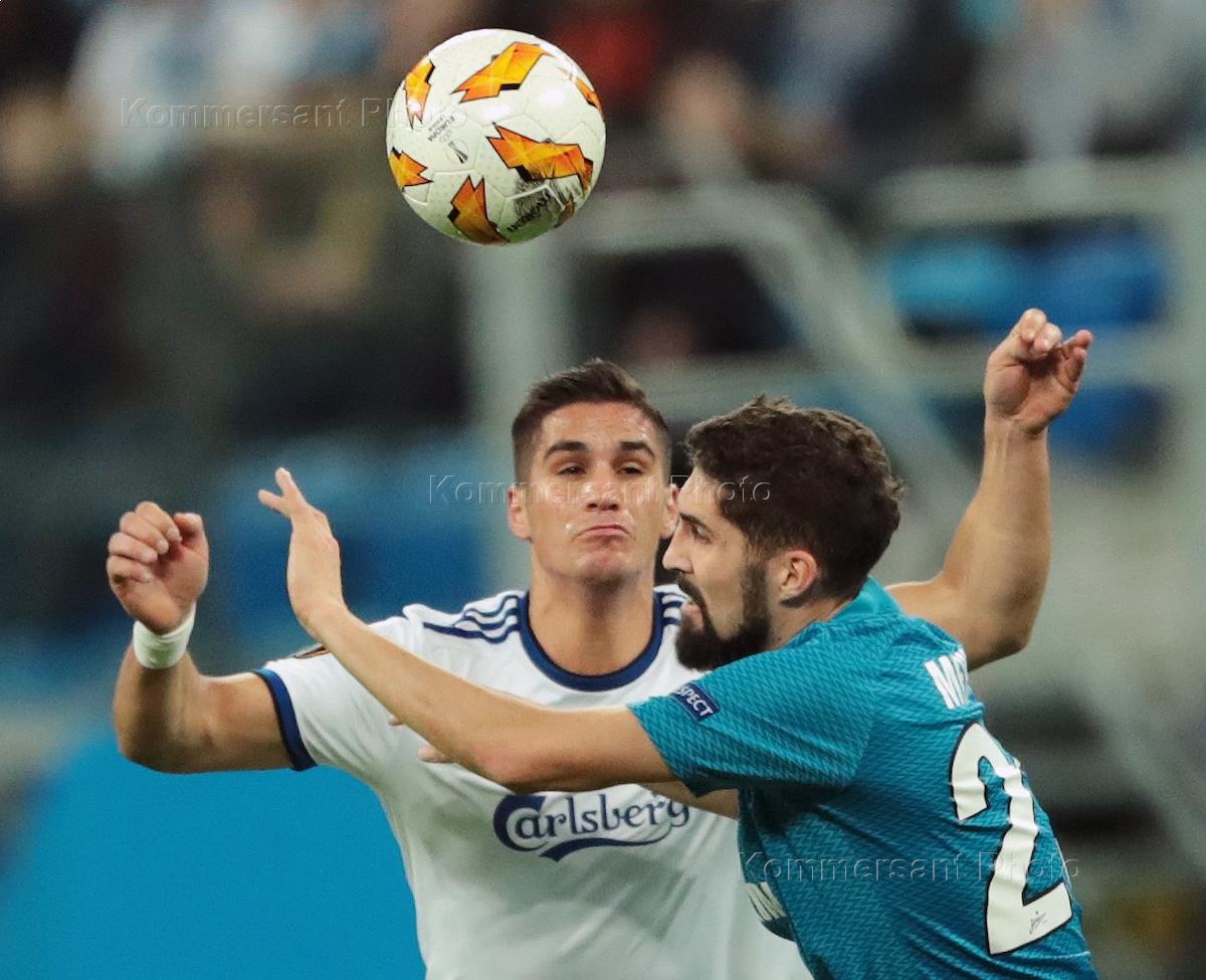 Лига Европы УЕФА по футболу. Матч между командами "Зенит" (Санкт-Петербург, Россия) - "Копенгаген" (Копенгаген, Дания) на стадионе "Санкт-Петербург". Игрок команды "Копенгаген" Зека (справа) во время матча.
