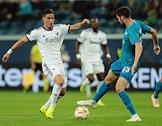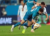 Лига Европы УЕФА по футболу. Матч между командами "Зенит" (Санкт-Петербург, Россия) - "Копенгаген" (Копенгаген, Дания) на стадионе "Санкт-Петербург". Игрок команды "Зенит" Миха Мевля (справа) во время матча.