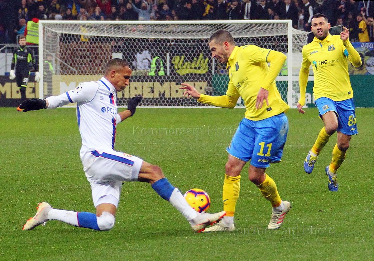 Российская Премьер-лига (РПЛ). Чемпионат России по футболу 2018/2019. 16-й тур. Матч между командами ЦСКА (Москва) и "Ростов" (Ростов-на-Дону) на стадионе "Ростов Арена". Игрок команды ЦСКА Кристиян Бистрович (второй справа) во время матча.