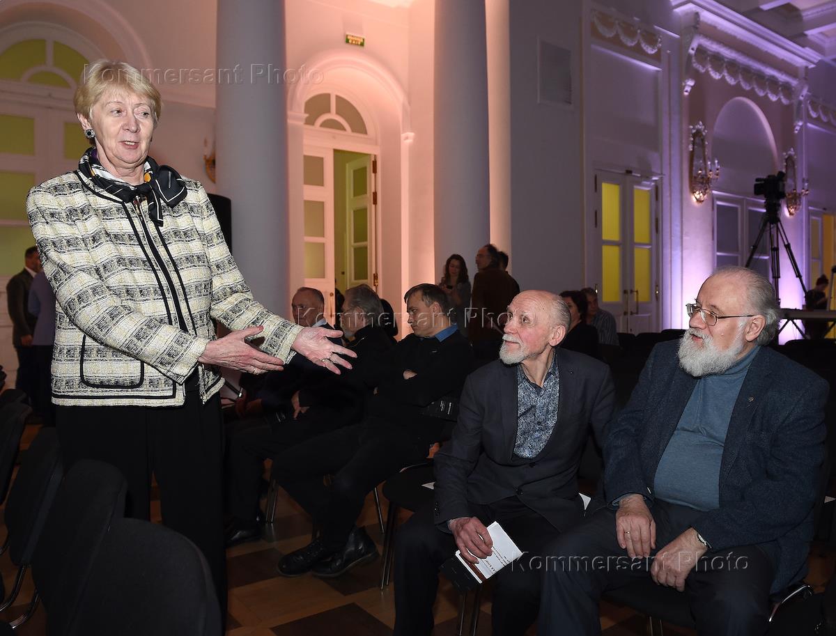 Церемония вручения национальной литературной премии "Большая книга" прошла в Доме Пашкова. Слева направо: председатель совета директоров Банковской группы "Альфа Банк", председатель совета директоров АО "АльфаСтрахование" Петр Авен, писатель Людмила Петрушевская и журналист, литературный критик Анна Наринская во время церемонии.