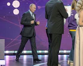 Международный форум добровольцев. Церемония вручения ежегодной премии "Доброволец России – 2018" прошла во дворце спорта "ЦСКА Арена". Президент России Владимир Путин во время церемонии.