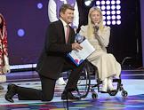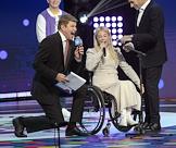 Церемония вручения ежегодной премии "Доброволец России – 2018", которая состоялась в рамках Международного форума добровольцев во дворце спорта "ЦСКА Арена". Спортивный комментатор Дмитрий Губерниев (слева) и член совета по вопросам попечительства в социальной сфере при правительстве России, член комиссии по делам инвалидов при президенте России Ксения Безуглова (справа) во время церемонии.