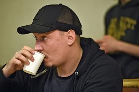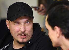 Круглый стол, посвященный отмене концертов некоторых рэп-исполнителей в регионах России, организованный молодежным парламентом при Государственной думе России. Рэп-исполнитель Жиган (Роман Чумаков) после заседания круглого стола.
