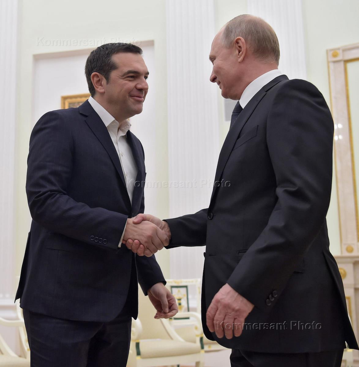 Президент России Владимир Путин во время встречи с премьер-министром Греции Алексисом Ципрасом в Кремле.