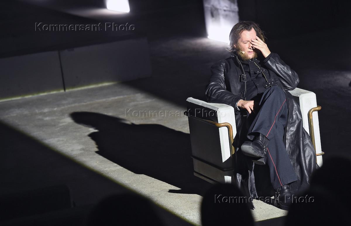 Спектакль "Ай Фак" режиссера Константина Богомолова и Мастерской Брусникина по мотивам романа Виктора Пелевина "iPhuck 10" в башне "Меркурий Тауэр" Московского международного делового центра "Москва-Сити". Актер Игорь Миркурбанов во время спектакля.