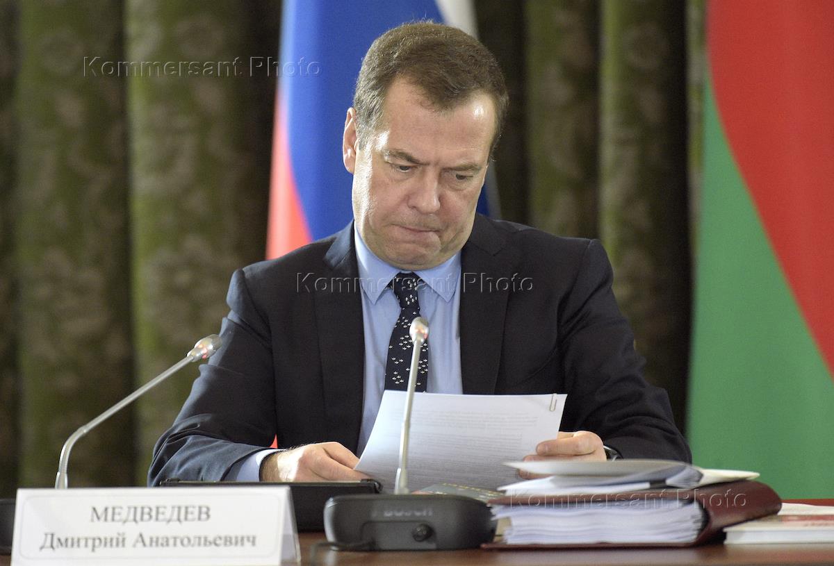 Заседание Совета Министров Союзного государства России и Белоруссии. Председатель правительства России Дмитрий Медведев (справа) перед началом заседания.