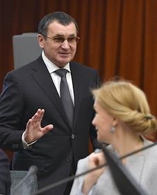 Семинар для руководителей законодательных (представительных) органов государственной власти субъектов РФ – членов Совета законодателей РФ в Российской академии наук (РАН). Слева направо: представитель в Совете Федерации России от законодательной власти Курской области Валерий Рязанский, председатель комитета Государственной думы России по труду, социальной политике и делам ветеранов Ярослав Нилов и заместитель председателя правительства России Татьяна Голикова во время семинара.