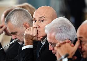 Рабочая поездка президента России Владимира Путина в Санкт-Петербург. Заседание Совета при президенте России по культуре и искусству прошло в Константиновском дворце. Композитор, продюсер Игорь Матвиенко (в центре) перед началом заседания.