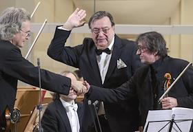 Рабочая поездка президента России Владимира Путина в Санкт-Петербург. Альтист, художественный руководитель и главный дирижер Государственного симфонического оркестра "Новая Россия" Юрий Башмет (справа) во время гала-концерта XIX международного зимнего фестиваля "Площадь искусств", посвященного юбилею художественного руководителя Санкт-Петербургской академической филармонии имени Д.Д.Шостаковича Юрия Темирканова. Концерт прошел в Большом зале Санкт-Петербургской академической филармонии имени Д.Д.Шостаковича.