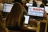 Повторные выборы губернатора Приморского края. Сотрудники в пресс-центре Единого информационного центра по выборам губернатора Приморского края.