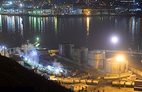 Виды Владивостока. Фуникулер у вантового моста через бухту Золотой Рог.