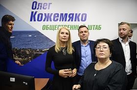 Повторные выборы губернатора Приморского края. Члены Общественного штаба кандидата на должность губернатора Приморского края временно исполняющего обязанности губернатора Приморского края Олега Кожемяко после окончания голосования.