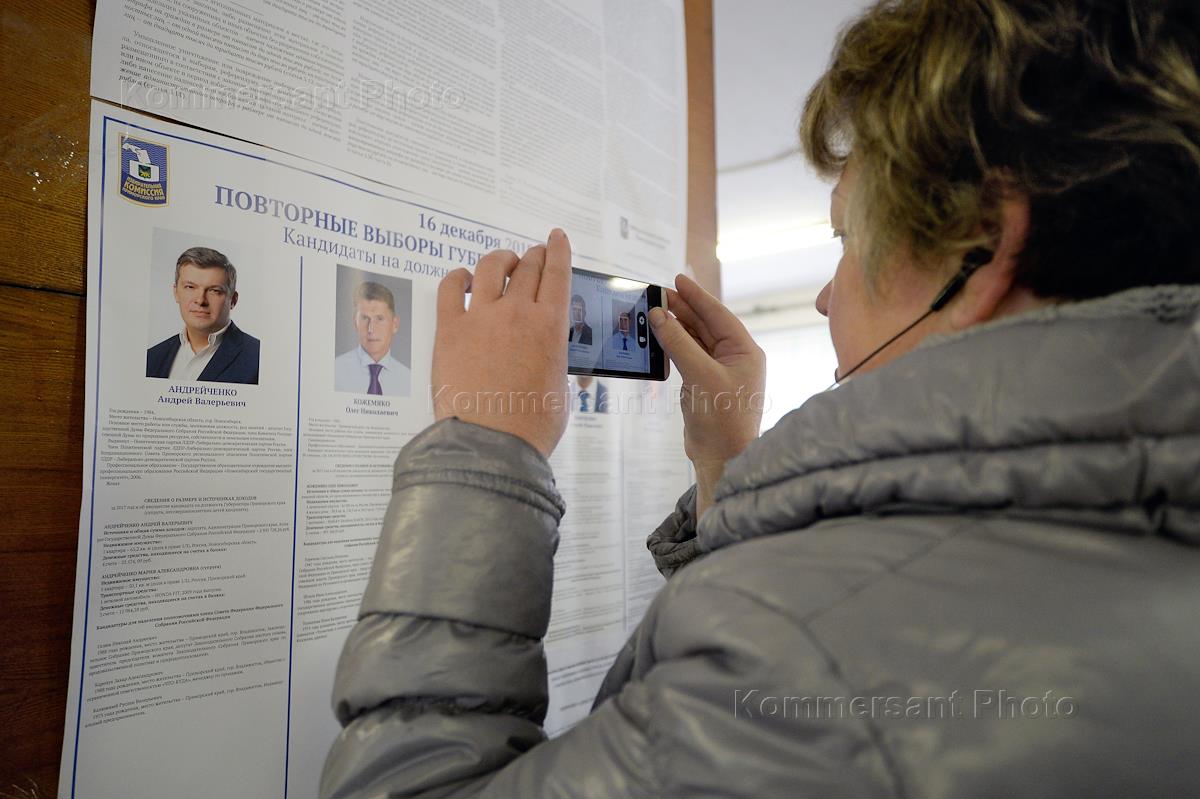 Повторные выборы губернатора Приморского края. Голосование на одном из избирательных участков во Владивостоке.