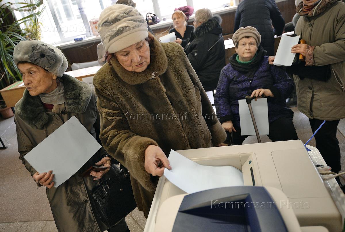 Повторные выборы губернатора Приморского края. Голосование на одном из избирательных участков во Владивостоке.