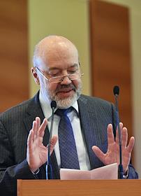 Парламентские слушания "25 лет Конституции Российской Федерации и институту Уполномоченного по правам человека в Российской Федерации: итоги и перспективы развития" в Государственной думе (ГД) России. Председатель комитета ГД России по государственному строительству и законодательству Павел Крашенинников во время слушаний.