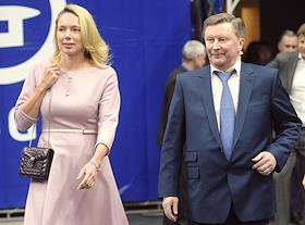 Евролига по баскетболу. Матч между командами ЦСКА (Москва, Россия) - "Анадолу Эфес" (Стамбул, Турция) на стадионе "Мегаспорт". Генеральный директор Единой лиги ВТБ Илона Корстин (слева) и специальный представитель президента России по вопросам природоохранной деятельности, экологии и транспорта Сергей Иванов (справа) перед началом матча.