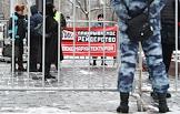 Участник митинга "Народ против строительного произвола!" у станции метро "Улица 1905 года". Проход участников через рамки металлоискателя.