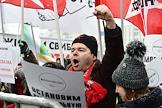 Участник митинга "Народ против строительного произвола!" у станции метро "Улица 1905 года".