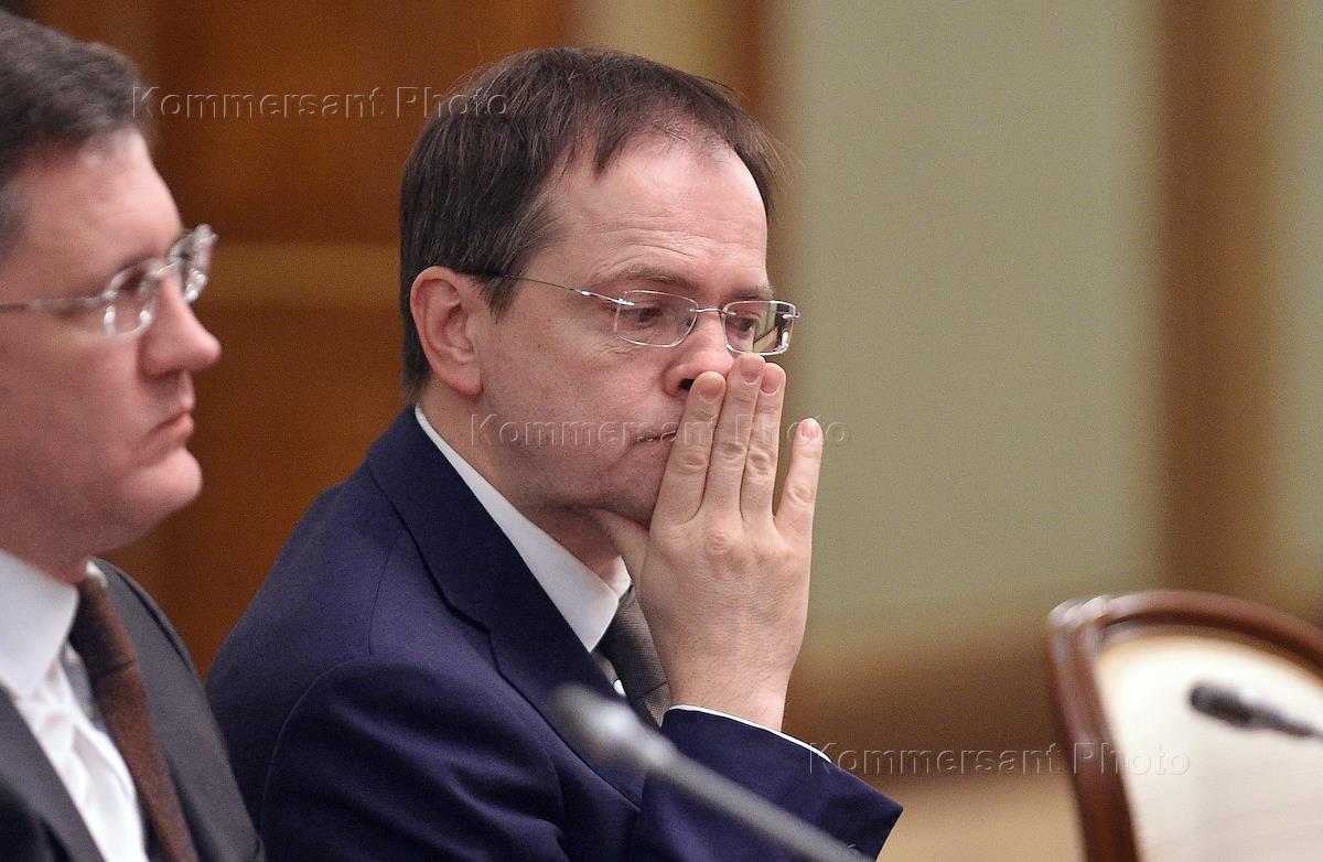 Встреча президента России Владимира Путина с членами правительства России прошла в Доме правительства России. Министр культуры России Владимир Мединский во время встречи.