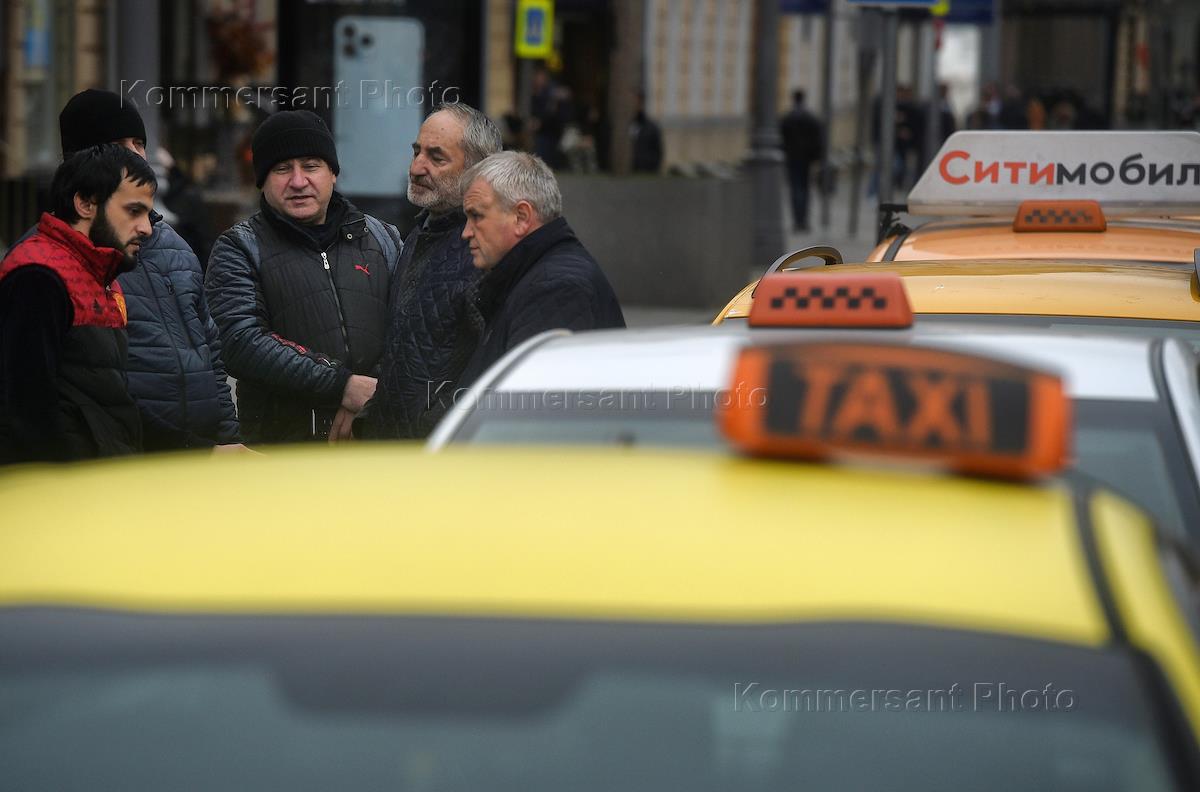 Genre photo. Taxi-rank in the city.