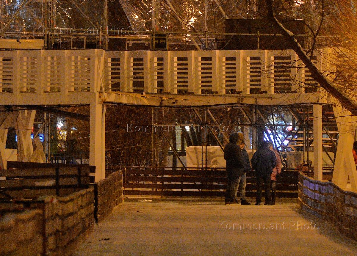 Последствия обрушения деревянного моста через каток в новогоднюю ночь в Парке Горького.