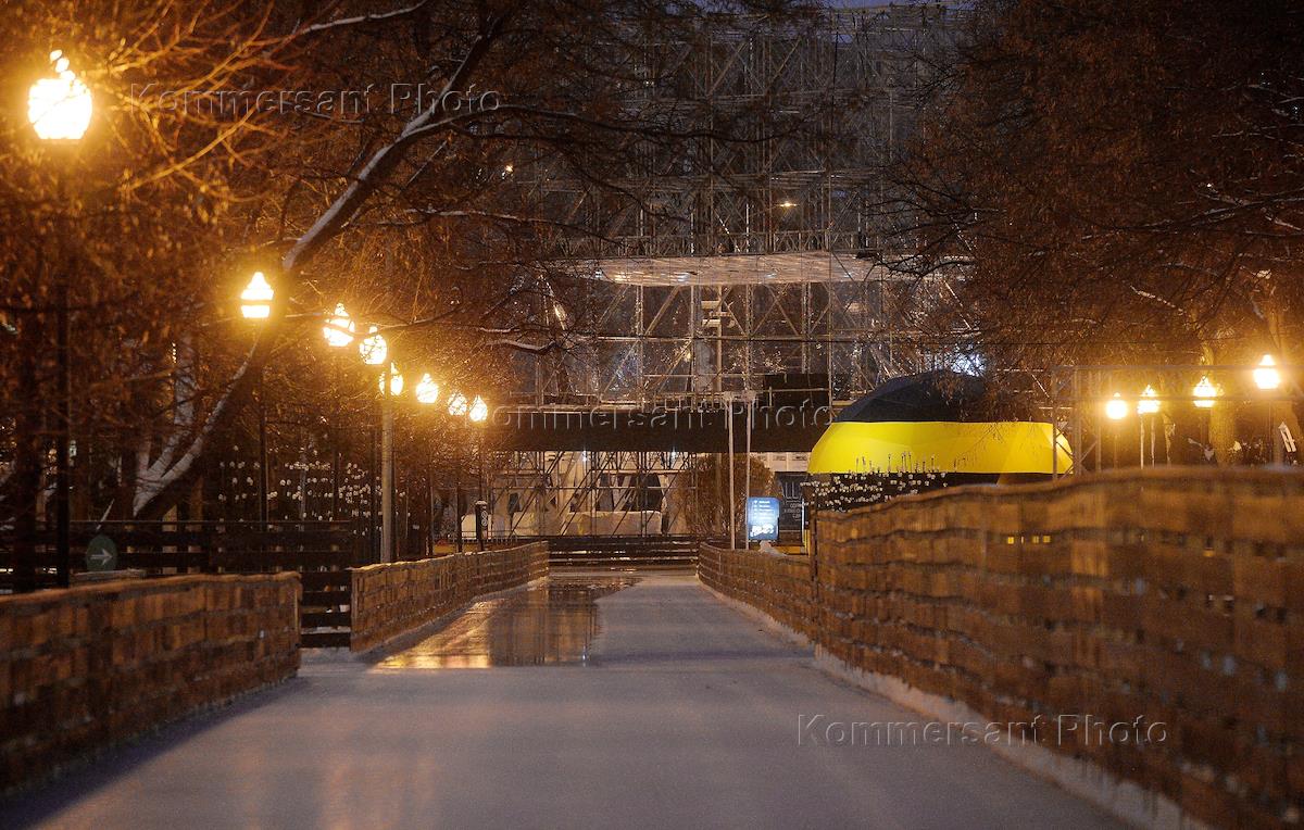 Последствия обрушения деревянного моста через каток в новогоднюю ночь в Парке Горького.