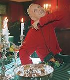 Артист эстрады Борис Моисеев на банкете после праздничного концерта, организованного Домом моды Валентина Юдашкина в ресторане "Метрополь".