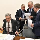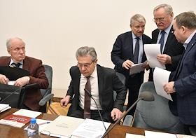 Первое в 2019 году заседание Президиума Российской академии наук (РАН). Справа налево: президент РАН Александр Сергеев, вице-президент РАН, председатель комиссии по работе с молодежью Валерий Козлов и вице-президент РАН, профессор Алексей Хохлов во время заседания.