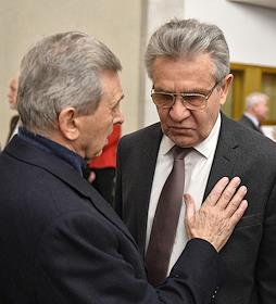 Первое в 2019 году заседание Президиума Российской академии наук (РАН). Президент РАН Александр Сергеев (слева) и член президиума РАН, директор Института органического синтеза имени И.Я.Постовского Уральского отделения РАН Валерий Чарушин (справа) перед началом заседания.