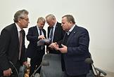 Первое в 2019 году заседание Президиума Российской академии наук. Вице-президент РАН, председатель Комиссии по работе с молодежью Валерий Козлов (слева), президент РАН Александр Сергеев (второй слева), член президиума РАН, директор Института органического синтеза имени И.Я.Постовского Уральского отделения РАН Валерий Чарушин (справа) и член президиума РАН, академик, директор Института химии Дальневосточного отделения РАН Валентин Сергиенко (второй справа) перед началом заседания.